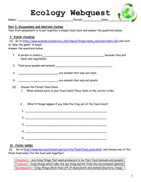 Download online ECOLOGY WEBQUEST ANSWER KEY Doc